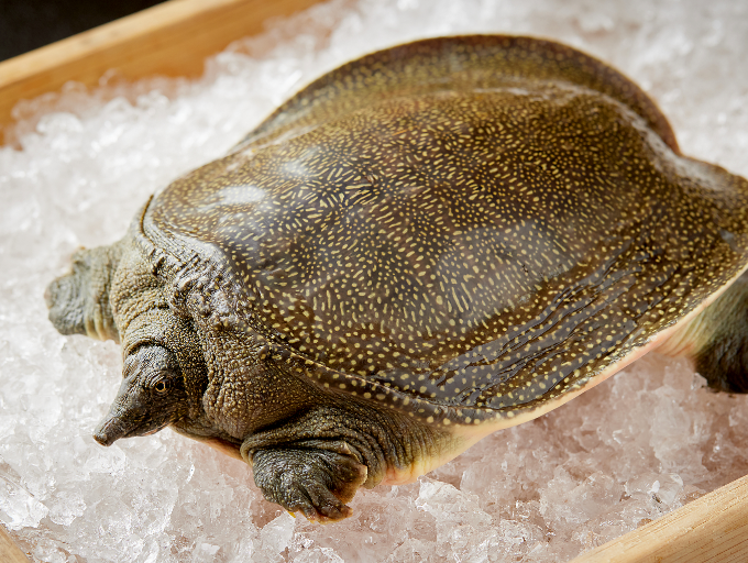 熊魚菴の厨房には、脂がのった最上級の長崎産すっぽんが一年中届きます。食物の「旨味」はアミノ酸に由来しますが、すっぽんの成分には18種類のアミノ酸が確認されており、その美味しさは折り紙つきです。また、最後の一滴まで飲み干したくなる滋味にあふれたスープは、東山三十六峰が育んだ湧水によって作られます。定期的に水質検査も行い、味と安心を保証しています。